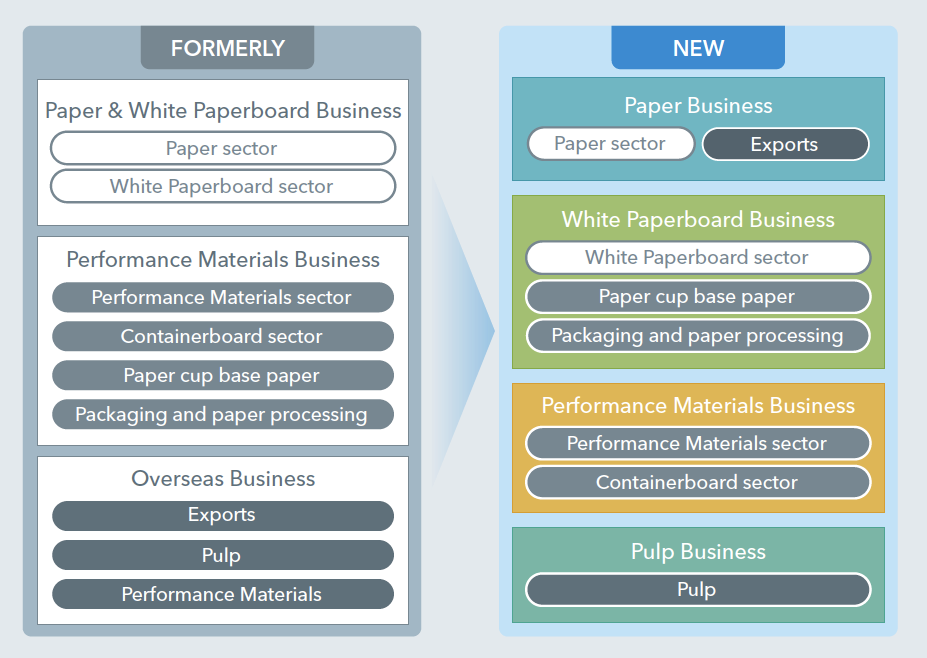 To adapt to changes in the business environment of the paper and pulp industry, in April 2025 the Group reorganized the Domestic Paper & White Paperboard Sales Division and the Global Trading Division into the Paper Sales Division and the White Paperboard Sales Division, creating a structure further geared to sales channel expansion and the characteristics of demand. We also moved the Paper Cup Business Development Office under the White Paperboard Sales Division, with the goal of maximizing synergies between the white paperboard business and packaging business.